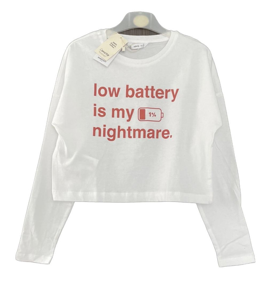 Feliratos, rövid fazonú felsőrész 164-es méretben.