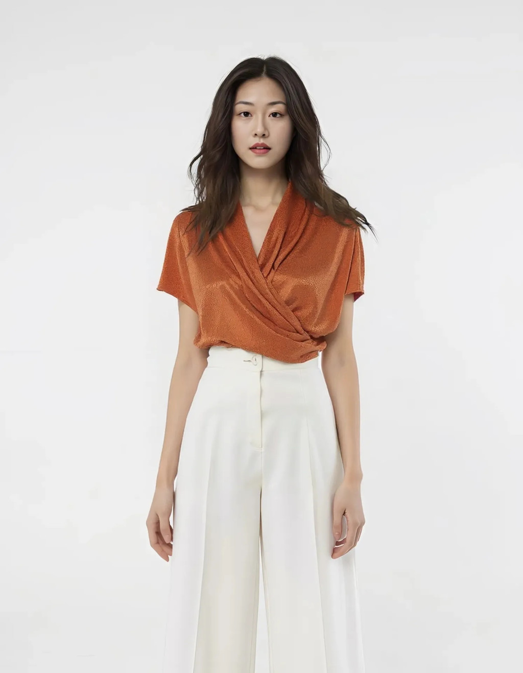 Terrakotta színű, strukturált anyagú női blúz S-es méretben.