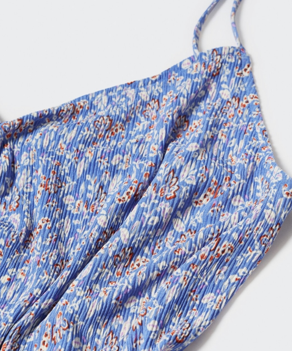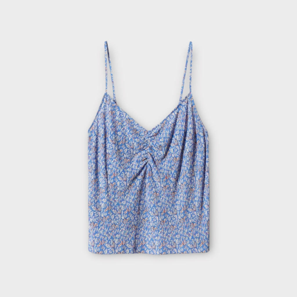 Pliszézett anyagú, virágos női nyári felső M-es méretben.