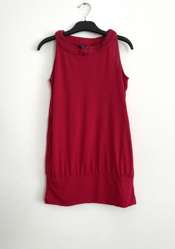 Hosszabb fazonú, piros színű női felső XS-es méretben.