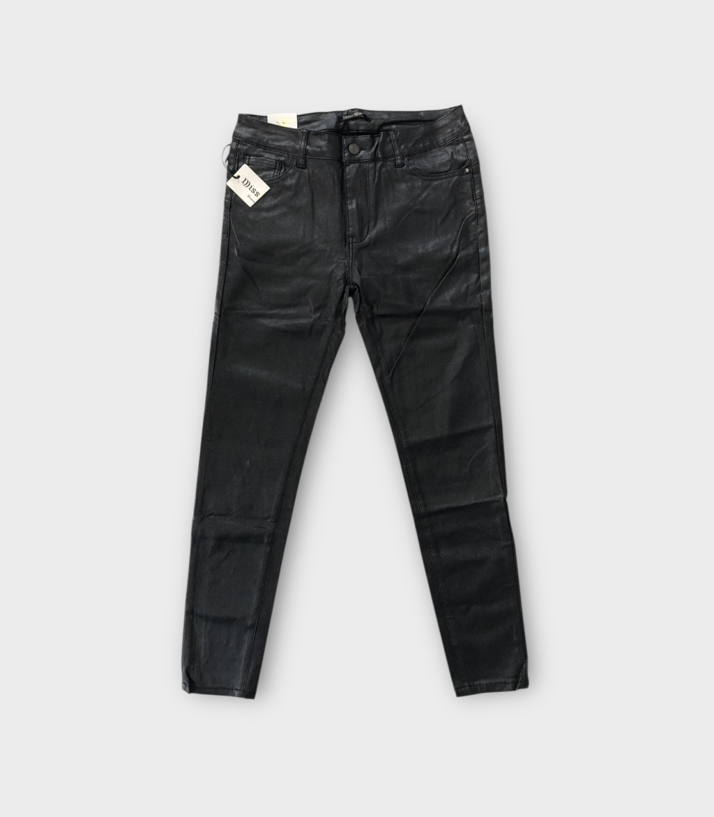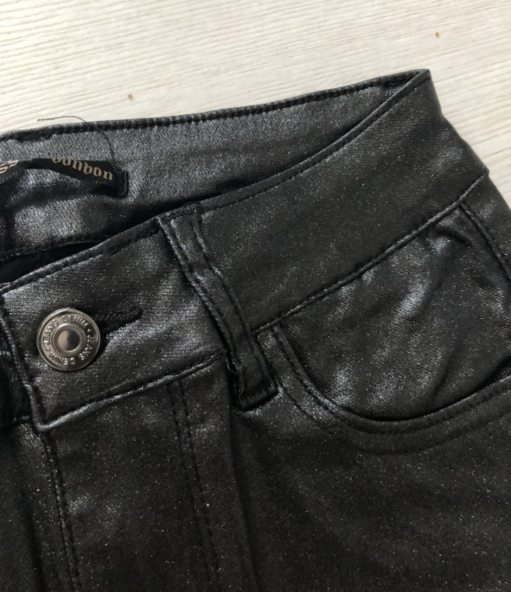Rugalmas anyagú, fekete, viaszolt push-up farmernadrág.