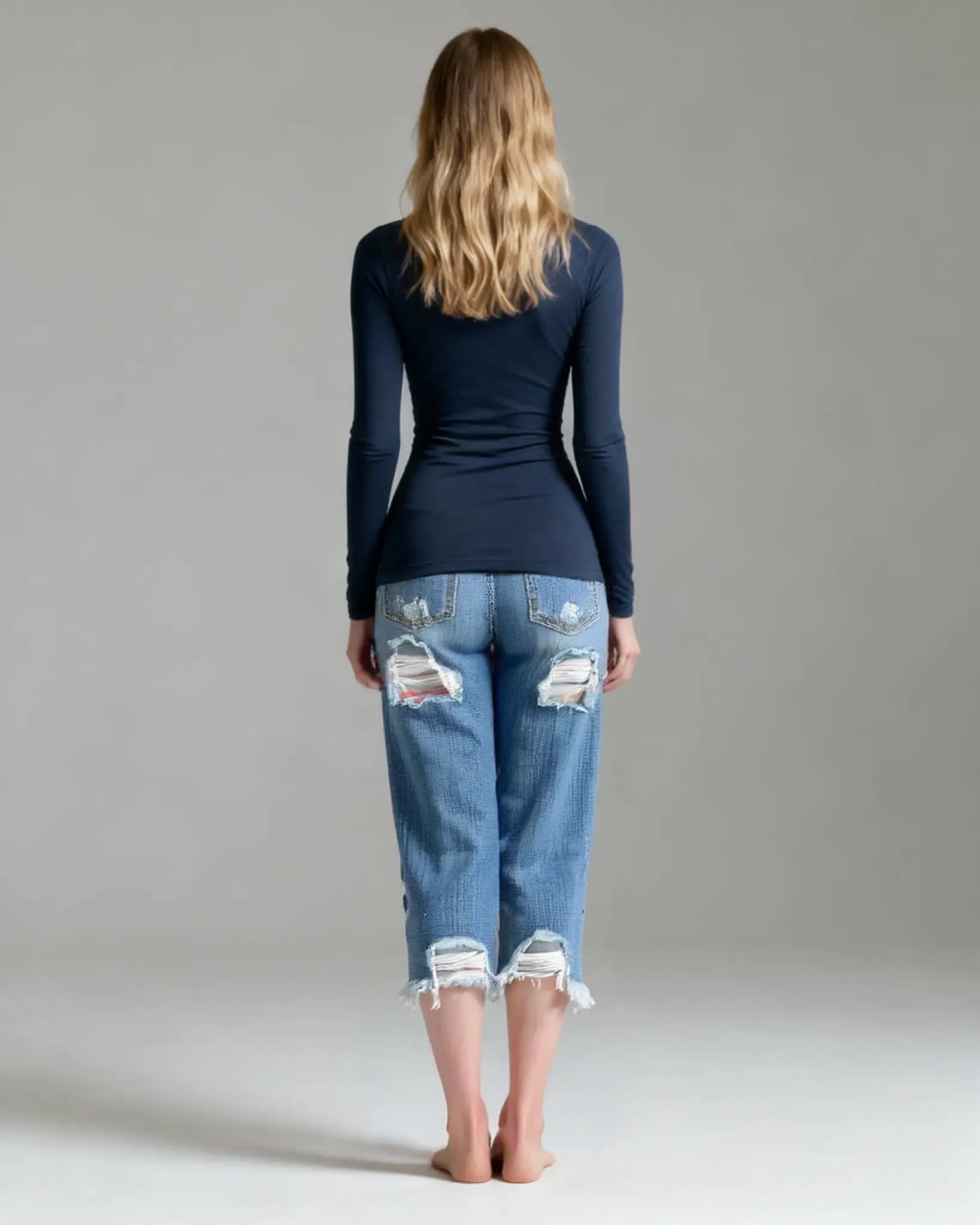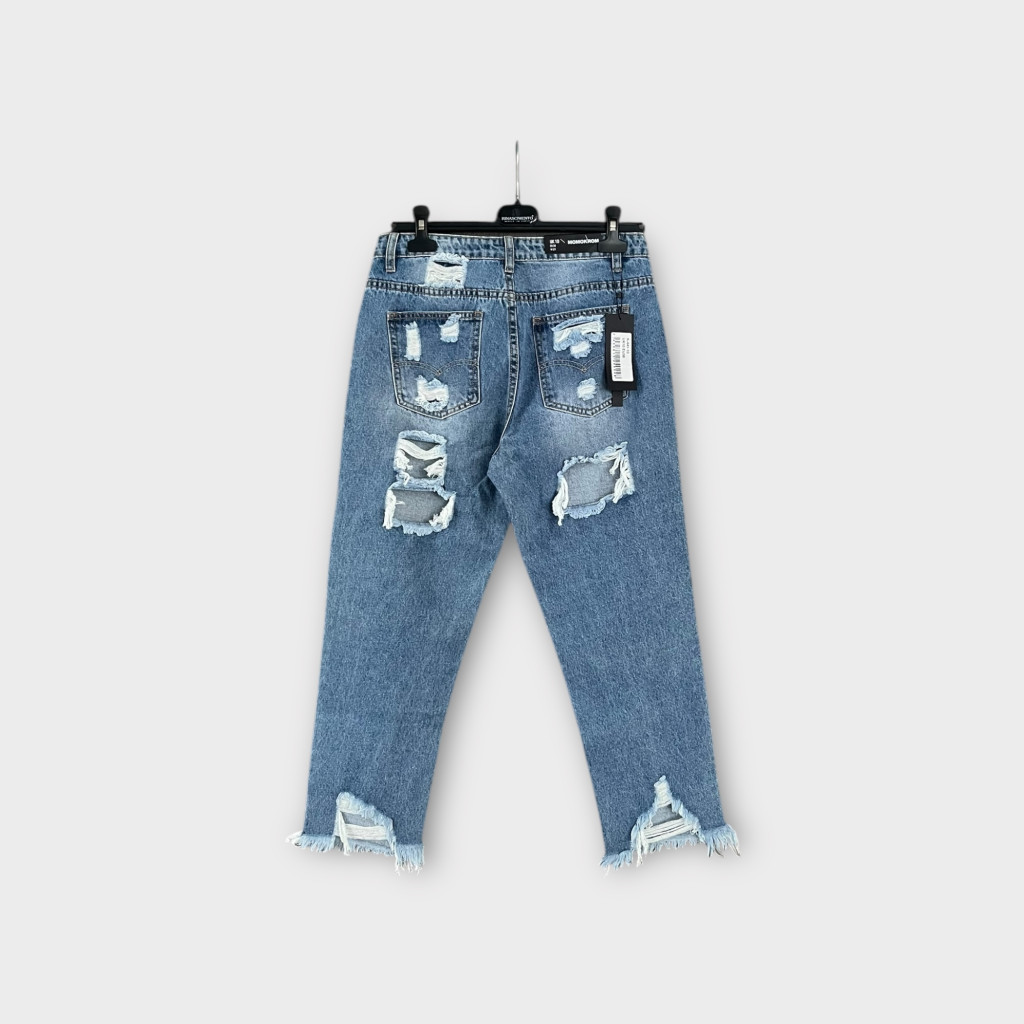 Momkrom hátul szaggatott női farmernadrág - M (ÚJ)