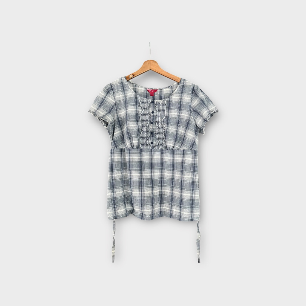 Rövid ujjú, kockás női blúz XL-es méretben.