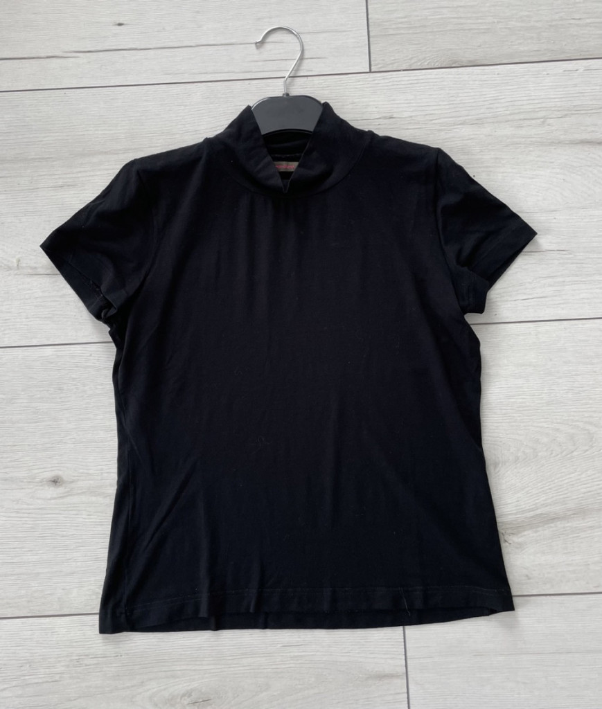 Emelt nyakú női póló S-es méretben.