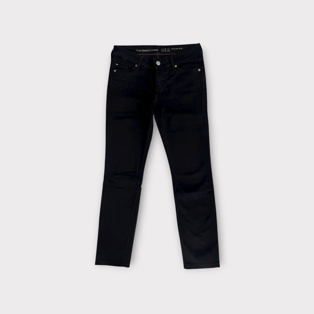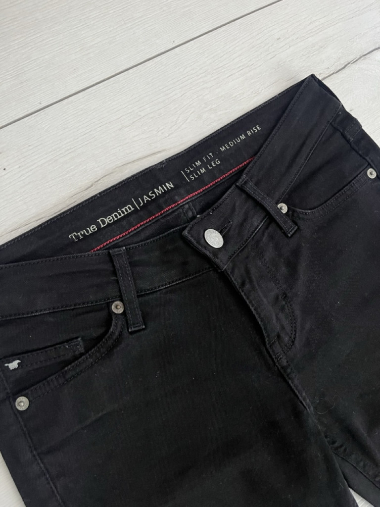 Középmagas derekú, slim fazonú női farmernadrág S-es méretben.