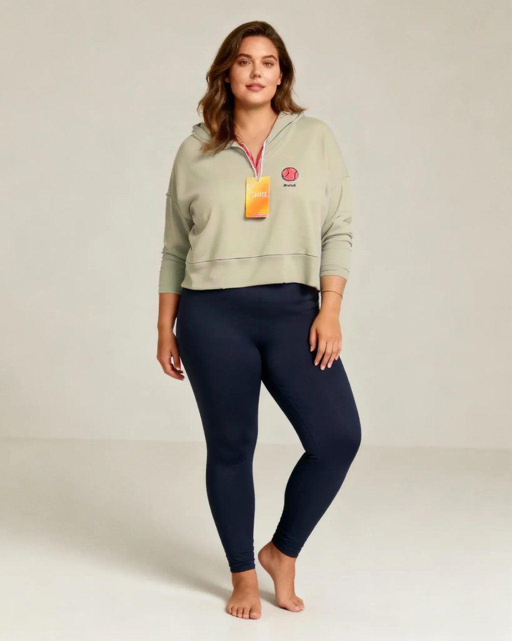 Rövid fazonú, női kapucnis pulóver XL-es méretben.