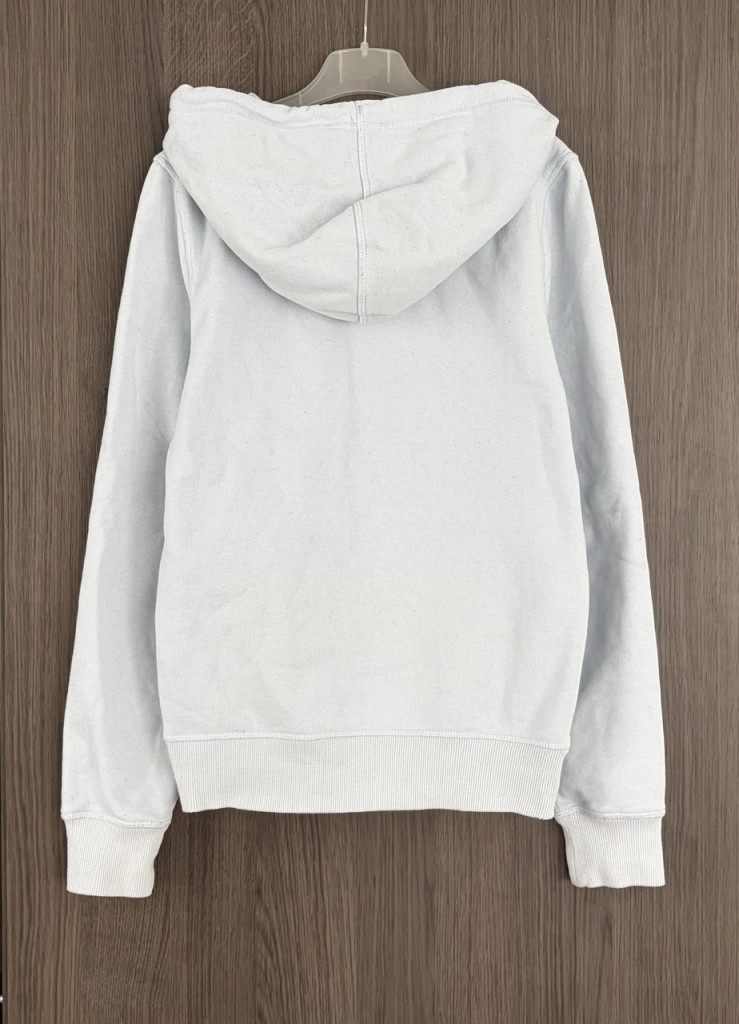 Világoskék női kapucnis pulóver S-es méretben.