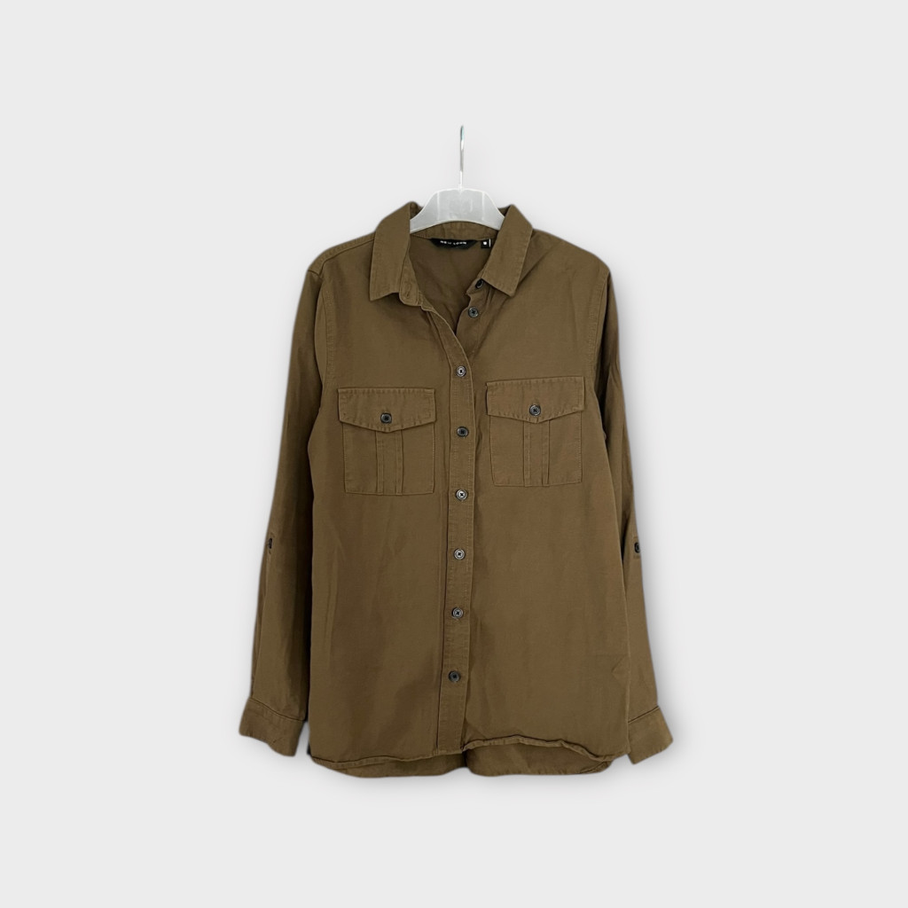 Khaki színű, viszkóz keverék női ing M-es méretben.