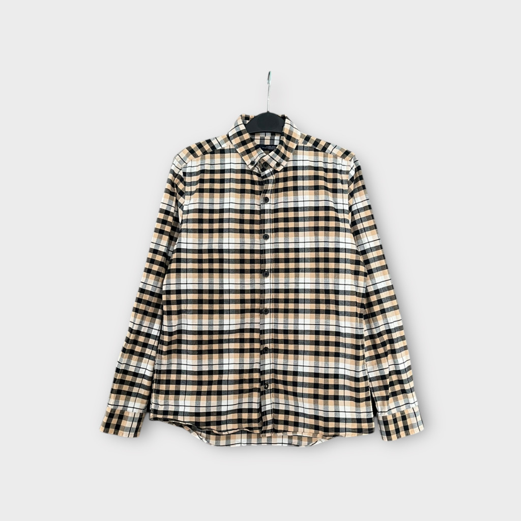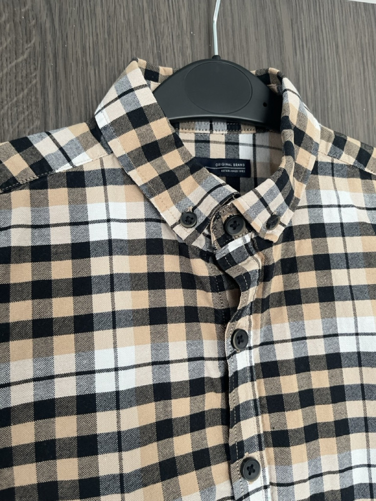 Bézs-fekete kockás fiú ing 146-os méretben.