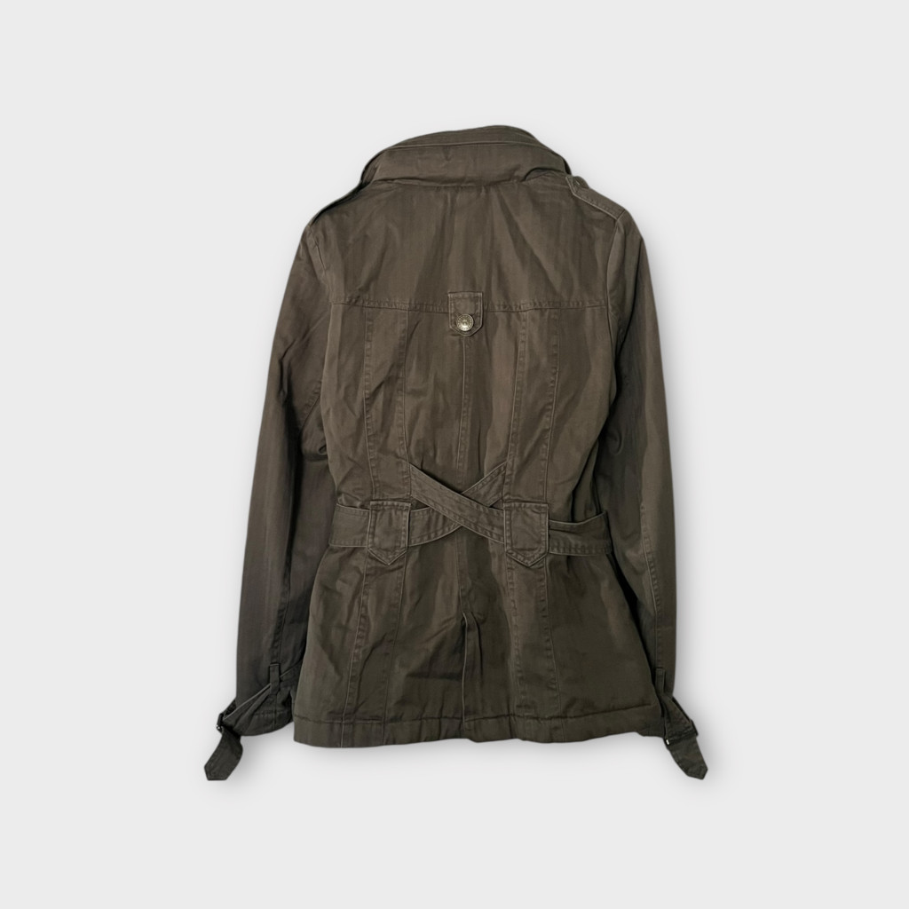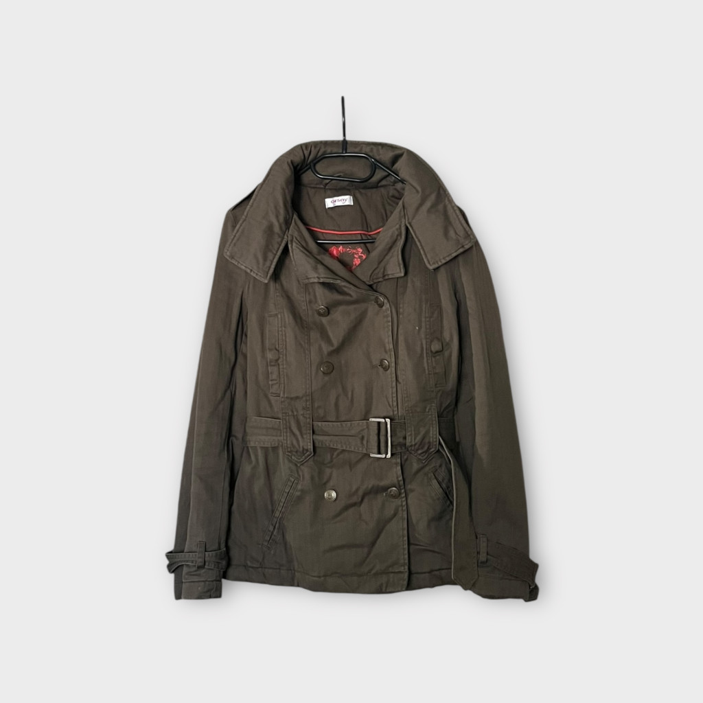 Csinos női kabát, nyakába csomagolható kapucnival.