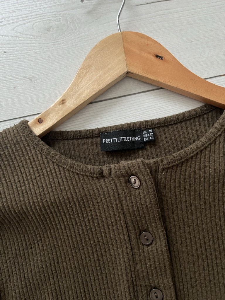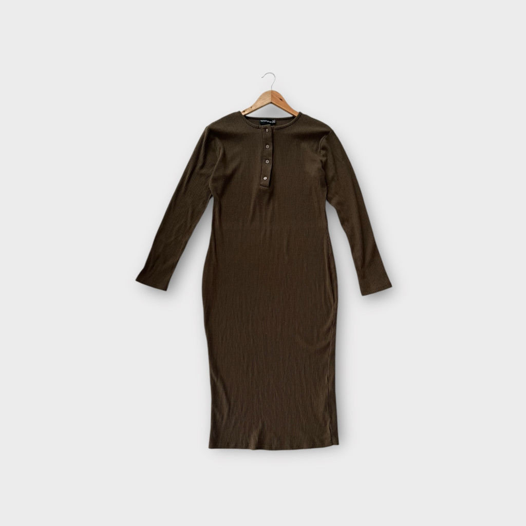 Kahki zöld, bordázott anyagú női ruha 44-es méretben.