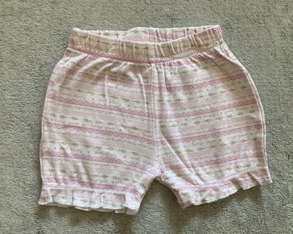 Fehér alapon mintás rövidnadrág 68-as méretben.