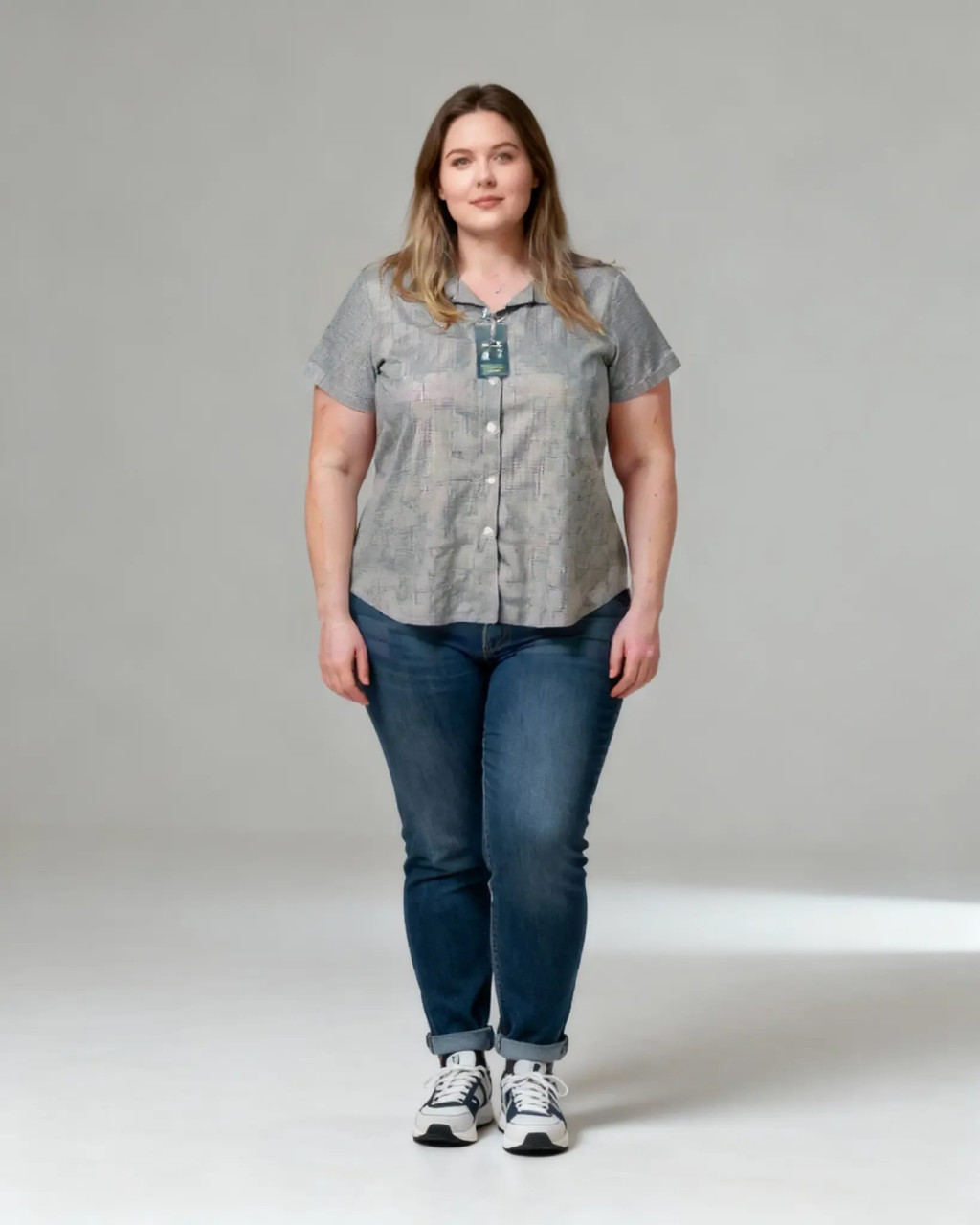 Apró kockás, karcsúsított női ing XXL-es méretben.