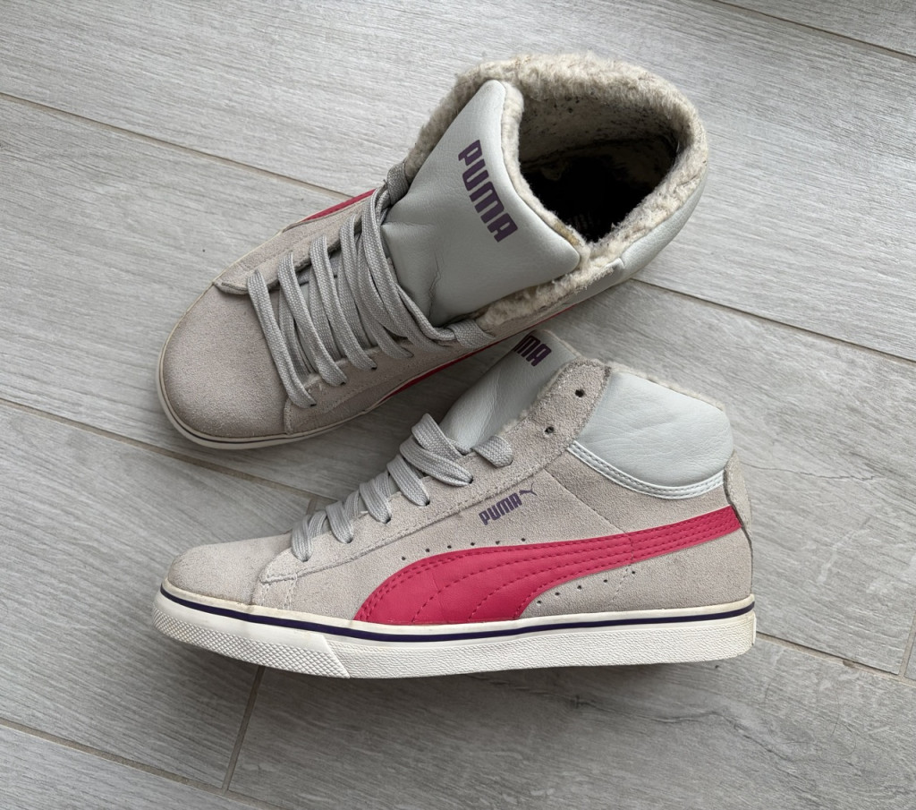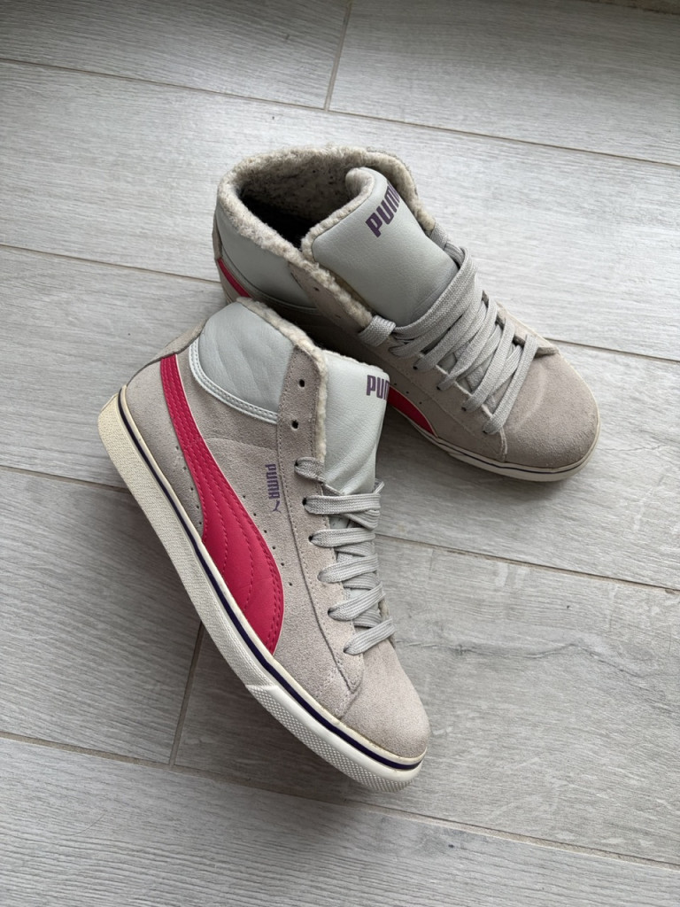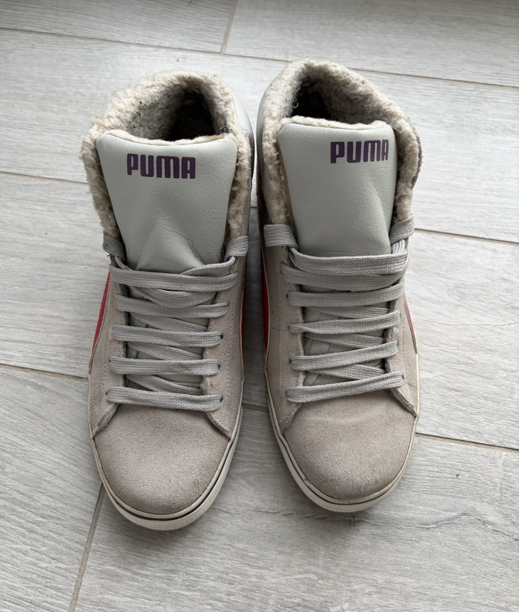 Belül bundás, világosszürke bőrcipő 38,5-es méretben.