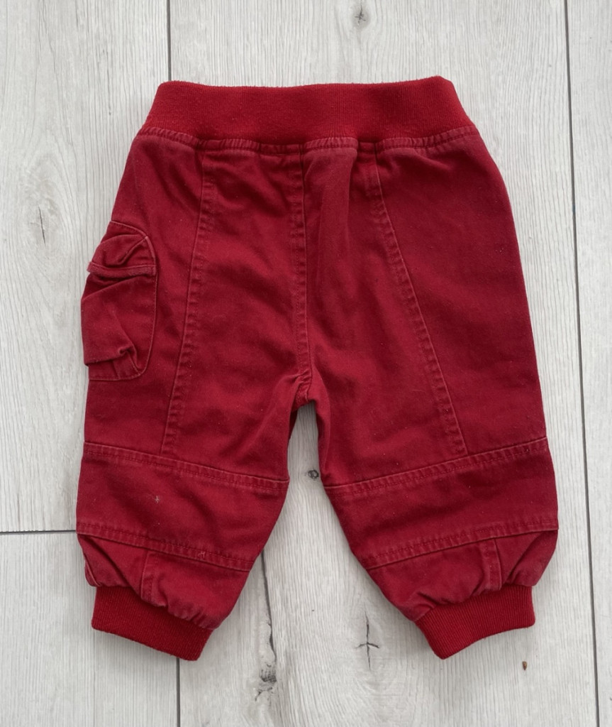 Prémium, piros színű kisfiú nadrág 74-es méretben.