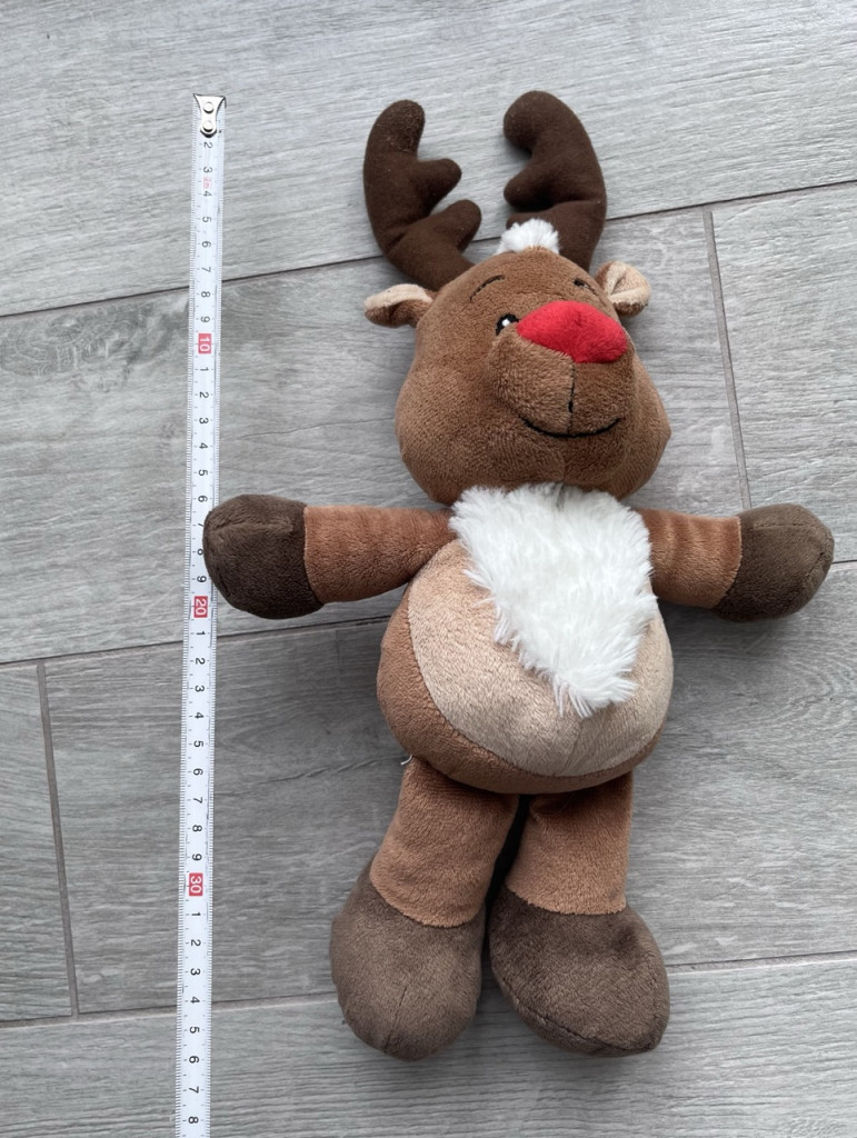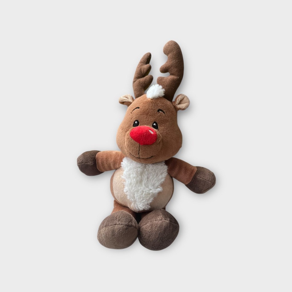 Aranyos rénszarvas plüss figura.