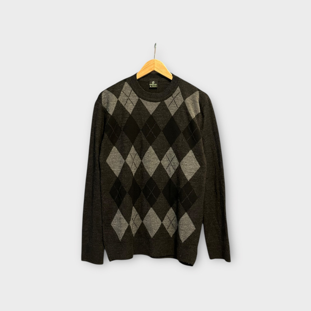 Rombuszmintás férfi pulóver. A beleírt méret XL, de inkább L-es méretre ajánljuk.