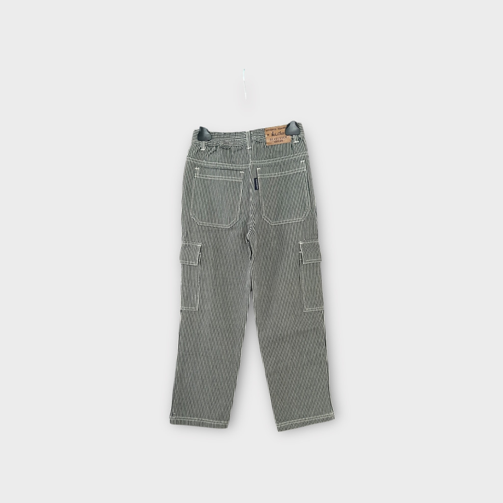 Laza fazonú, csíkos fiú cargo farmernadrág 134-es méretben.