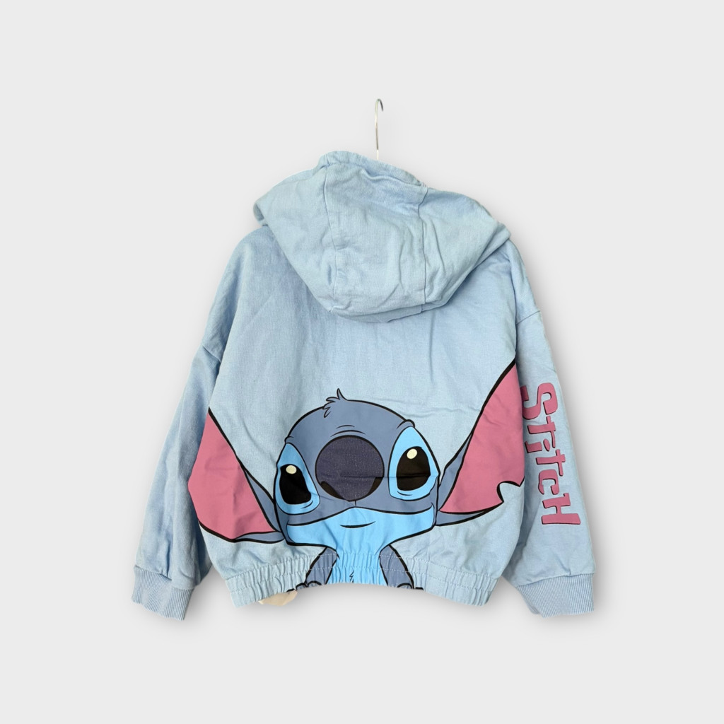Stitch mintás, bő fazonú kislány kapucnis pulóver.