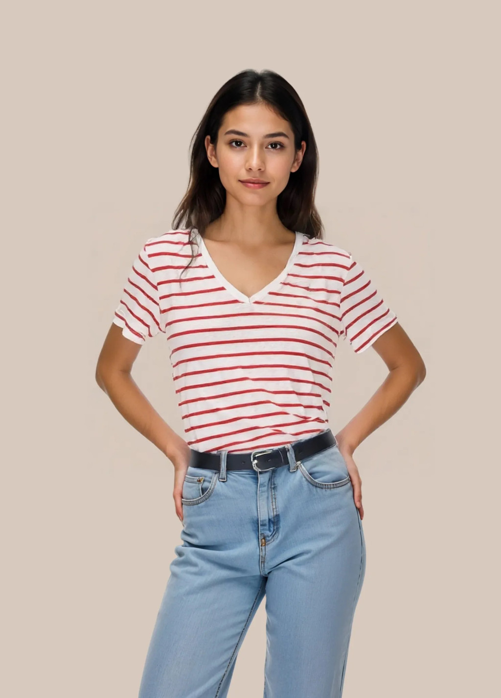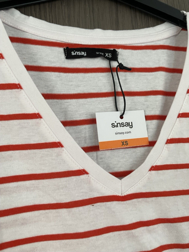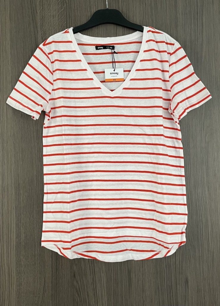 Csíkos női póló. A beleírt méret XS, de S méretre ajánljuk.