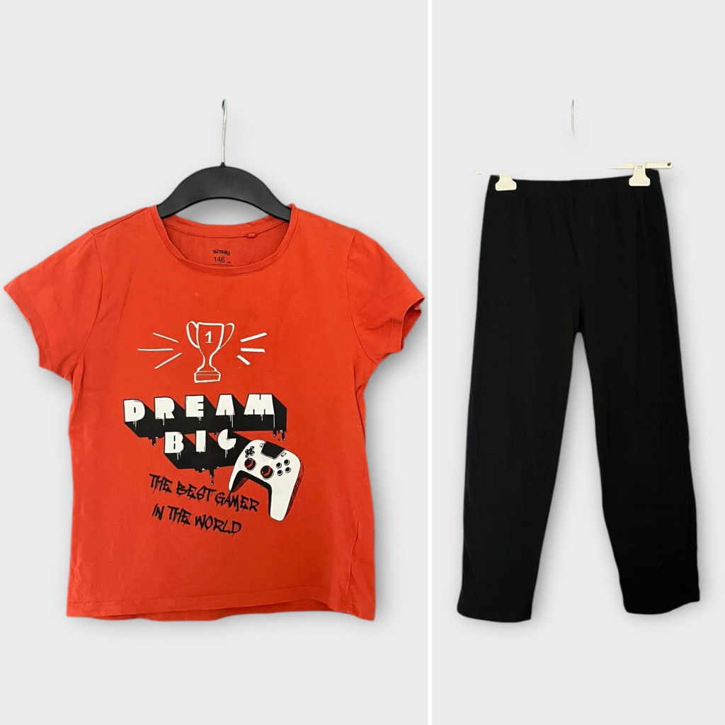 Fiú pizsama szett. A beleírt méret 146, de 140-es méretre ajánljuk.