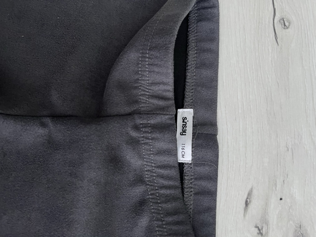 Sötétszürke művelúr leggings. A beleírt méret 116, de inkább 110-esre ajánljuk.