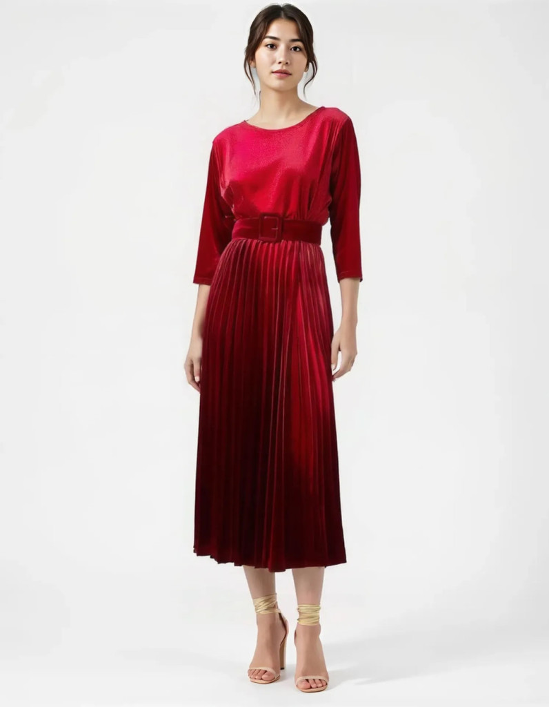 Gyönyörű, rakott női bársonyruha S-es méretben.