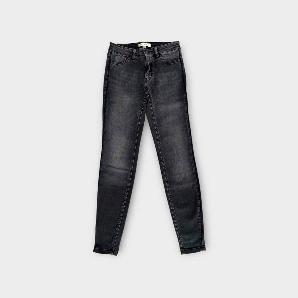 Koptatott szürke, közepes derékmagasságú farmernadrág XS-es méretben.