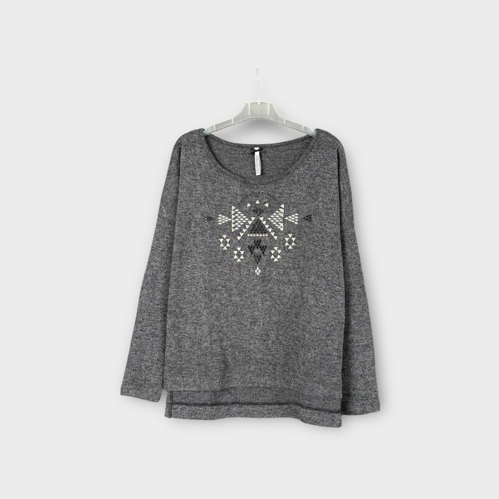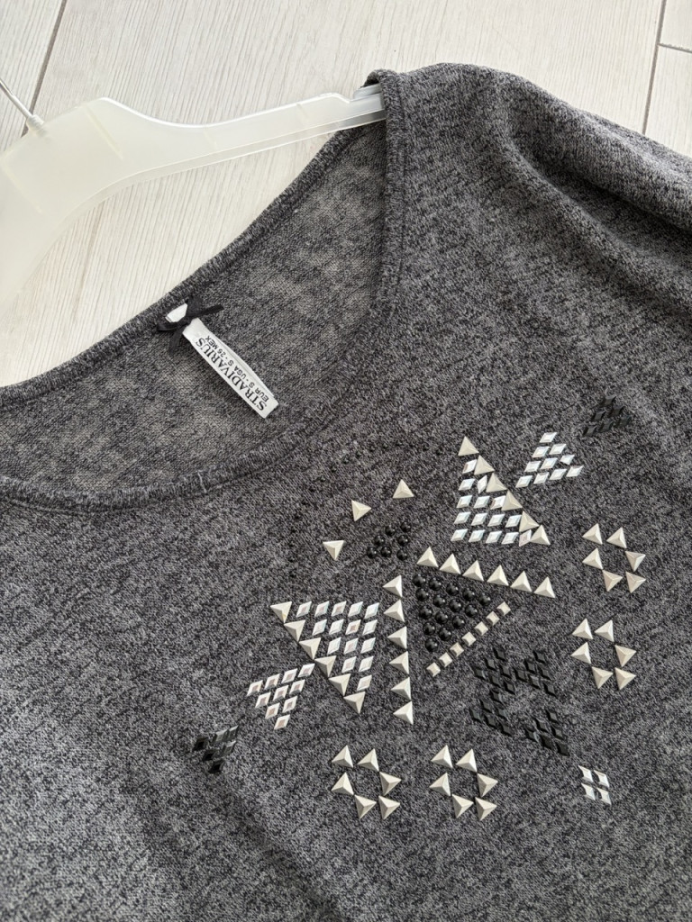Szegecselt, finomkötött női pulóver S-es méretben.