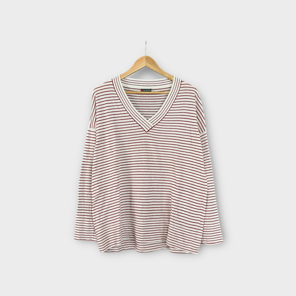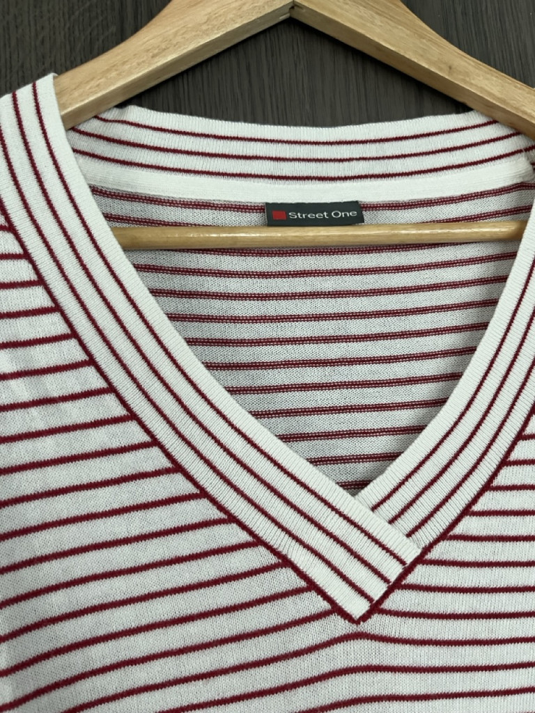 Finomkötött, csíkos női pulóver XXL-es méretben.