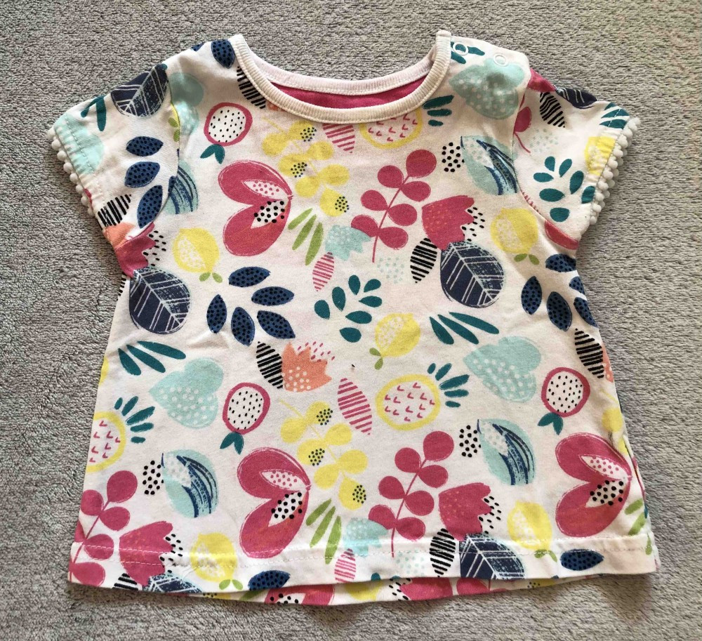 Színes gyümölcsös póló 68-as méretben.
