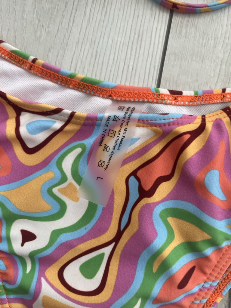Kivehető szivacsos, színes női bikini szett L-es méretben.