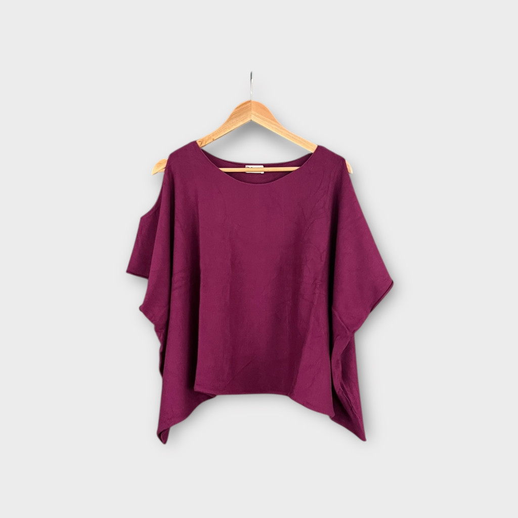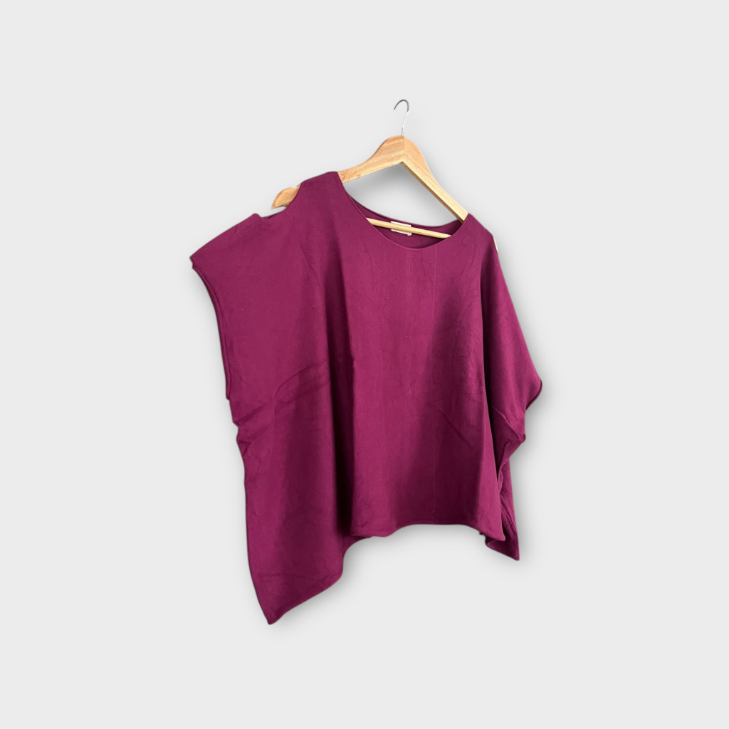 Nyitott vállú női pulóver/poncsó. Egy méret, S-tól L-ig hordható.