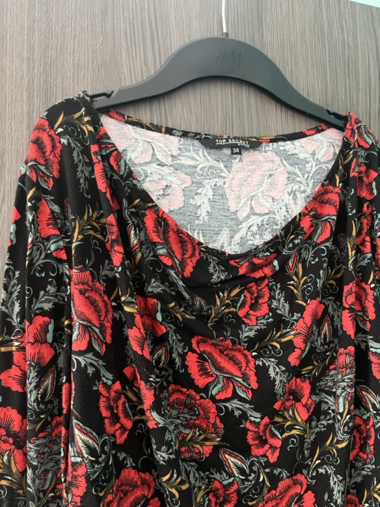 Lágy esésű, rózsás női felső. A beleírt méret XS, de inkább S-es méretre ajánljuk.