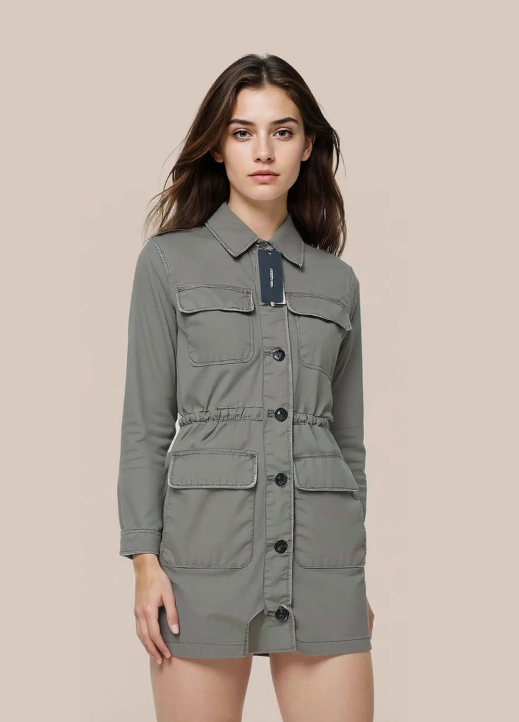 Szürke színű női átmeneti kabát S-es méretben.