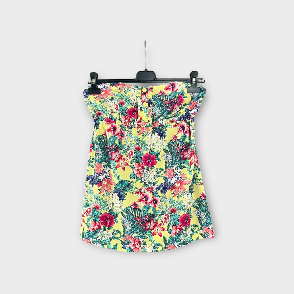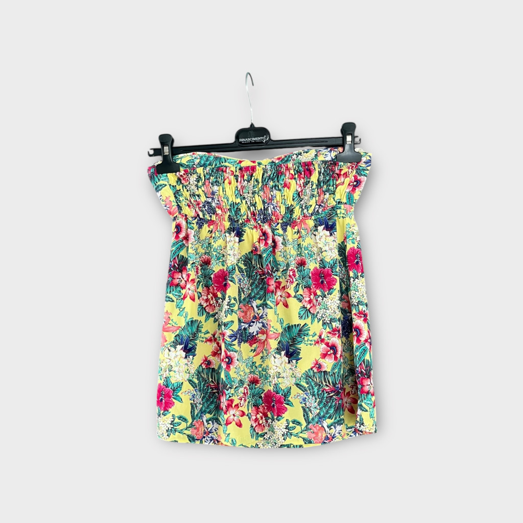 Virágos, pánt nélküli női top S-es méretben.