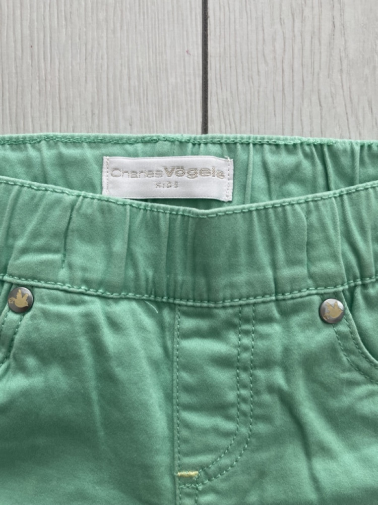 Zöld színű, 7/8-os, kisfiú nadrág 92-es méretben.