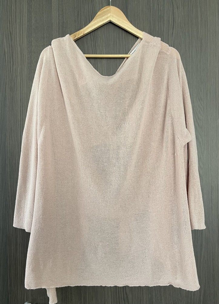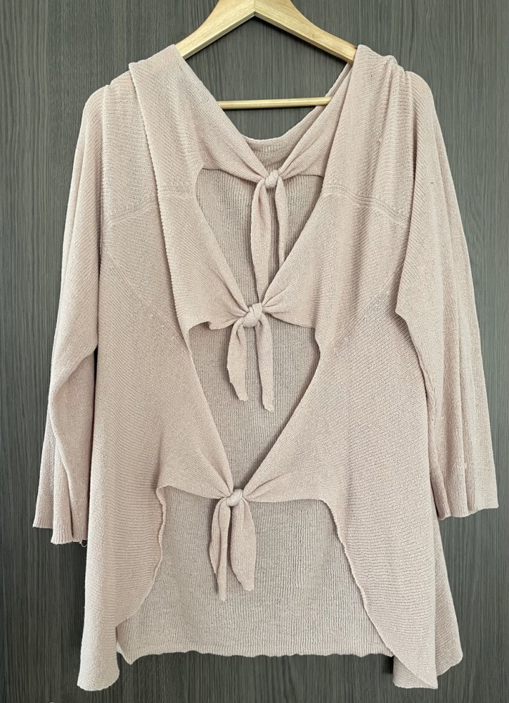 Csomózott hátú, finomkötött női pulóver XL-es méretben.